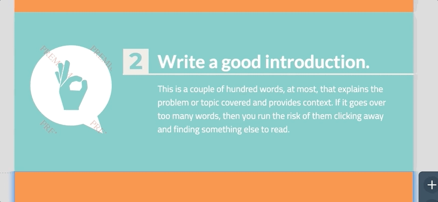 The infographics downloaded as a JPEG for free tend to be pretty blurry, which means you wouldn’t want to share it online or with your team. Also if there are Premium icons or illustrations in the template, they have Premium plastered all over the element.