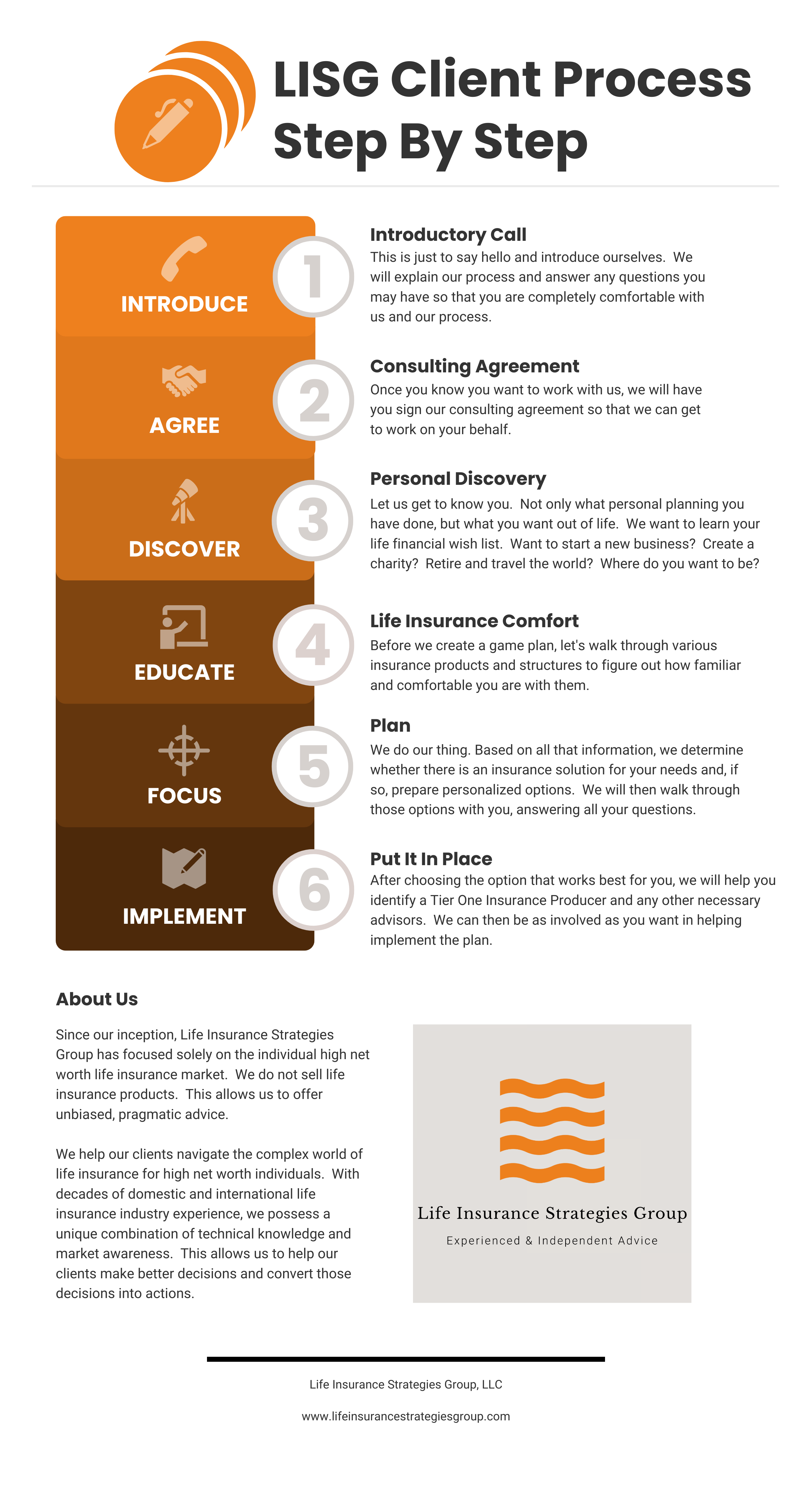 Life Insurance Strategies Group is a high net worth life insurance consultancy. They consult for high net worth individuals looking to life insurance solutions for their planning needs as well as for life insurance carriers and producers who distribute life insurance plans and products.